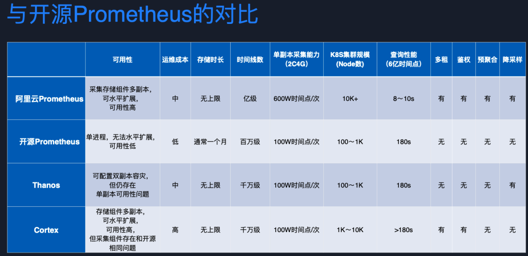 最后是阿里云 Proemtheus 监控与开源版本的对比。