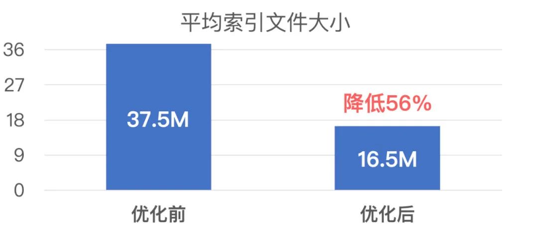 下面是 iOS 微信优化前后的平均每个用户的索引文件大小对比: