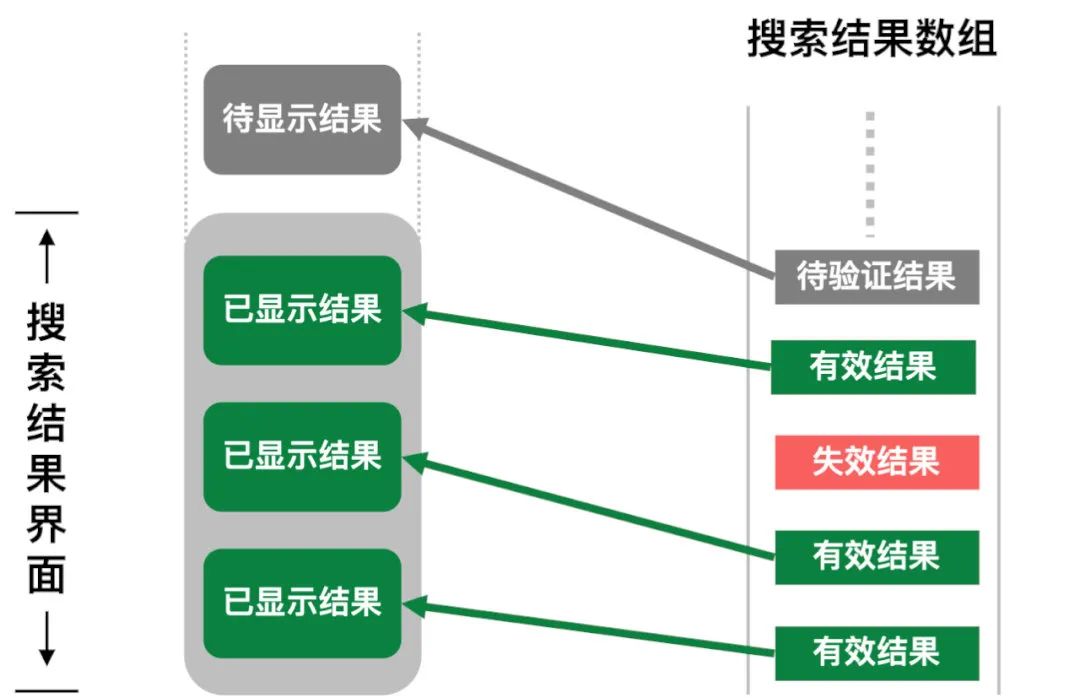 对于每个索引都对应有效的业务数据,这就要求业务数据删除之后索引也要必须删掉。现在业务数据的删除和索引的删除是异步的,会出现业务数据删掉之后索引没删除的情况。这种情况会导致两个问题,一个是冗余索引会导致搜索速度变慢,但这个问题出现概率很小,这个影响可以忽略不计;第二个问题是会导致用户搜到无效数据,这个是要避免的。因为要完全删掉所有无效索引成本比较高,所以我们采用了惰性检查的方法来解决这个问题,具体做法是搜索结果要显示给用户时,才检查这个数据是否有效,无效的话不显示这个搜索结果并异步删除对应的索引。因为用户一屏能看到的数据很少,所以检查逻辑带来的性能消耗也可以忽略不计。而且这个检查操作实际上也不算是额外加的逻辑,为了搜索结果展示内容的灵活性,我们也要在展示搜索结果时读出业务数据,这样也就顺带做了数据有效性的检查。