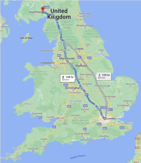 Chronicle Queue的企业版(Enterprise)在500k msg/s的低吞吐量下,99%ile(正态分布中的平均值)的单个微服务的端到端延迟为3.69微秒。这等同于信号传播了750米的距离,也就是普通人在伦敦市中心步行10分钟的直线距离(请参见下图)。