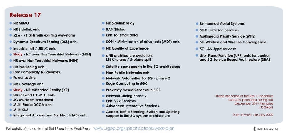 图2:5G3PP Release 17概述(来源:5G3PP)