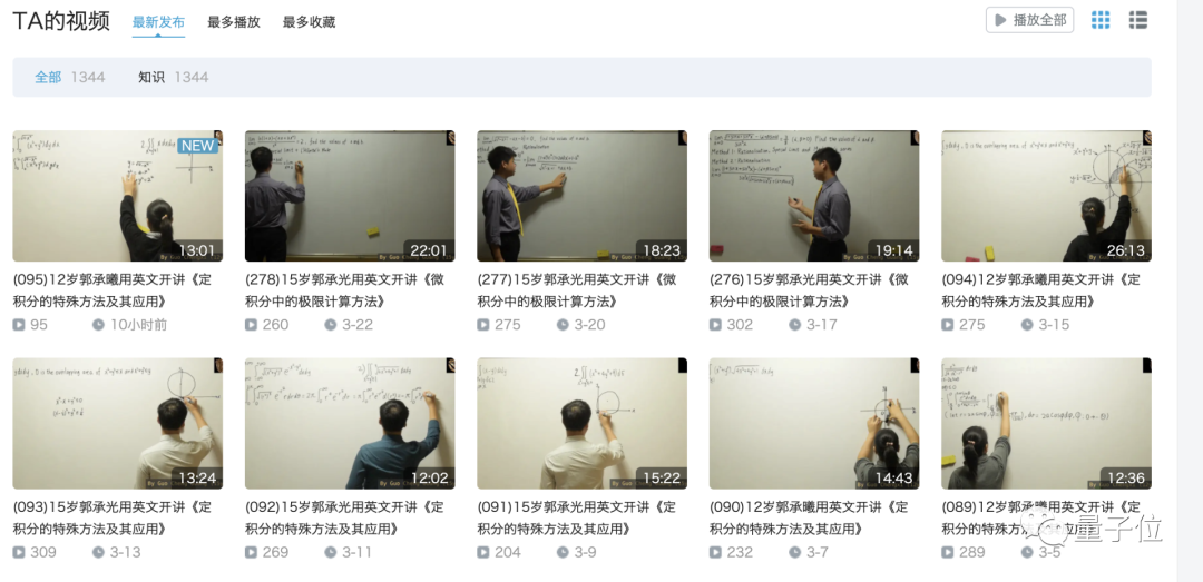 探索者Ongo的朋友、教学区up主承光承曦——一对12、15岁的兄妹,早在四年前就已经开始用中英文讲解大学微积分、化学、物理等知识。