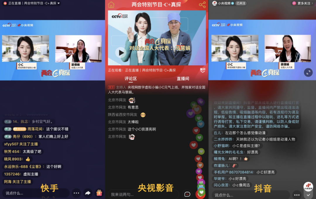 继冬奥会之后,今年两会的媒体报道,虚拟数字人主播再度成为关注的焦点。多家媒体推出了自己的虚拟数字人主播,比如央视网的小C,SMG融媒体中心的申䒕雅,央视频的AI王冠等。