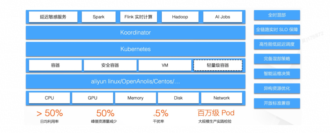 正是在双 11 这样的峰值场景驱动之下,阿里的混部调度技术持续演进,积累了大量的生产实践经验,到今天已经是第三代即云原生全业务混部系统。这样一套基于云原生理念的混部技术解决方案,脱胎于阿里巴巴,希望通过开源社区辐射到整个行业,帮助企业在云原生容器调度方向上加速快跑。