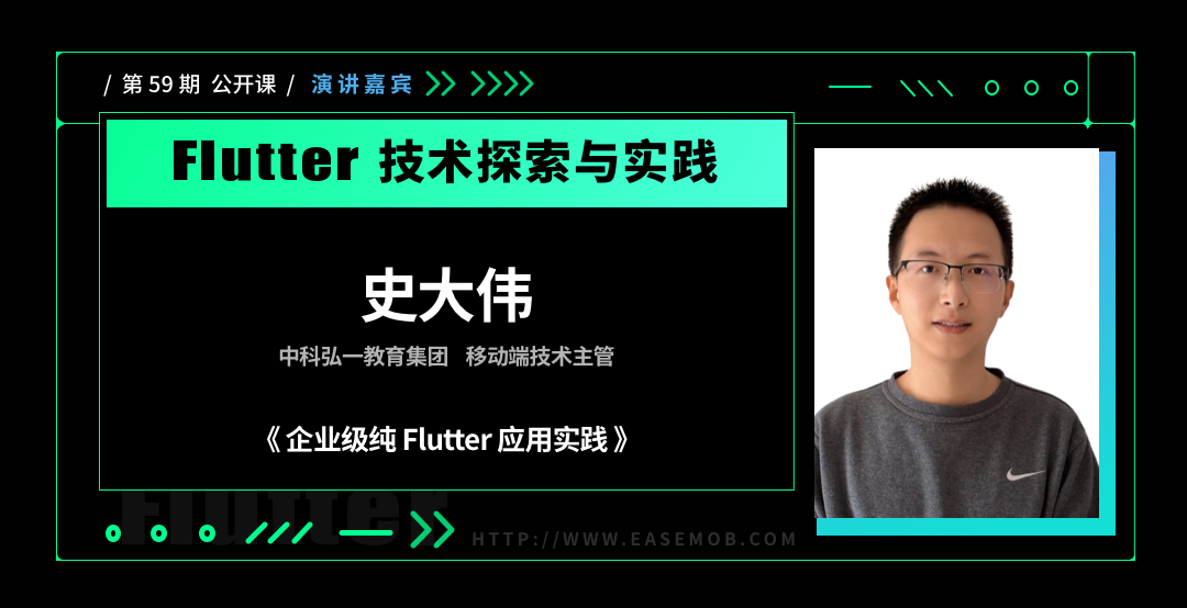 史大伟,中科宏一 Flutter 从0到1的引入,负责了中科宏一 Flutter 架构和框架的建设,开源项目Ulog,Flutter_interceptor作者。