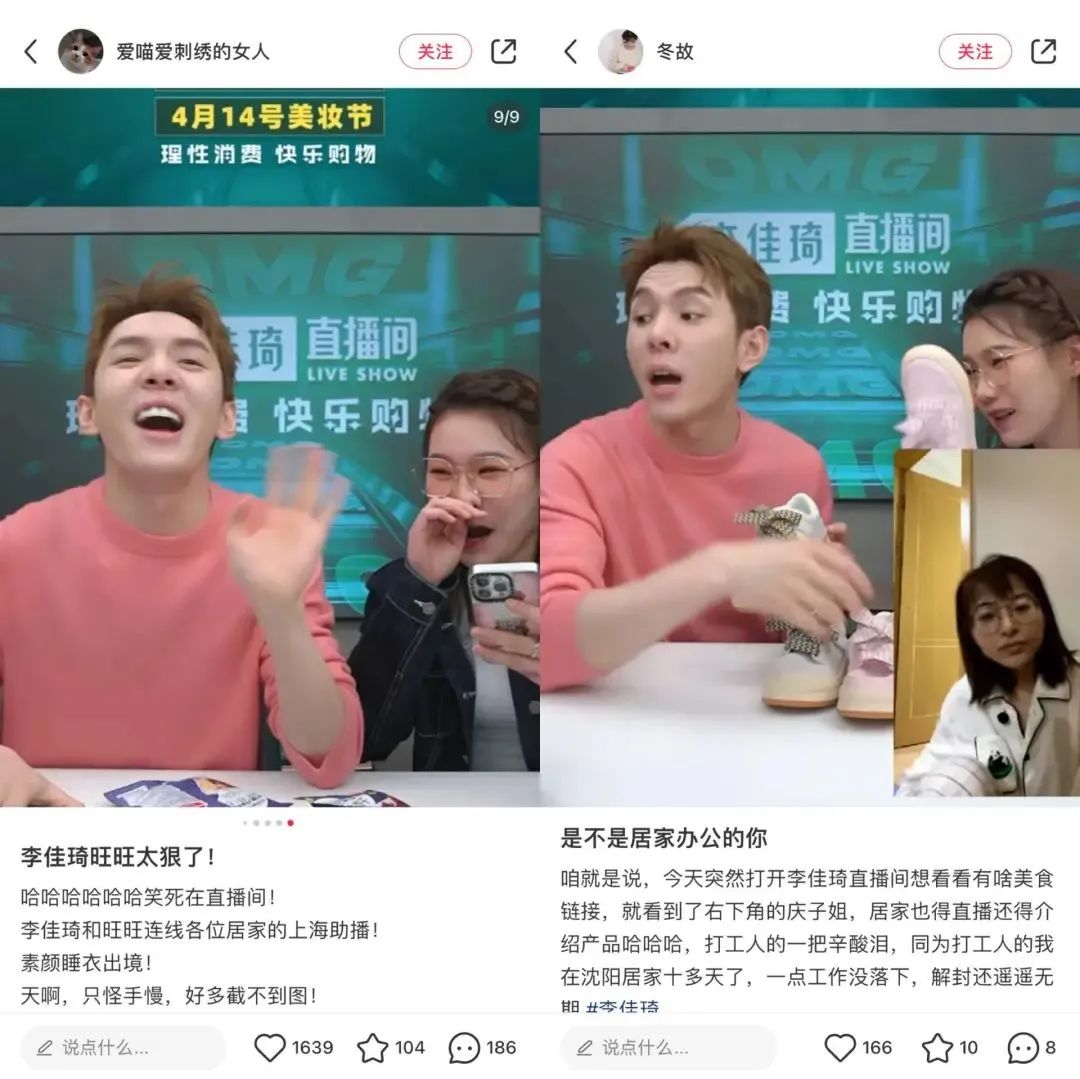 4月以来,因为多位助播被隔离在家,李佳琦直播间暂未出现助播场,由他与旺旺二人进行直播,上架商品减少的同时,单场直播时长也从7小时被压缩至3小时。