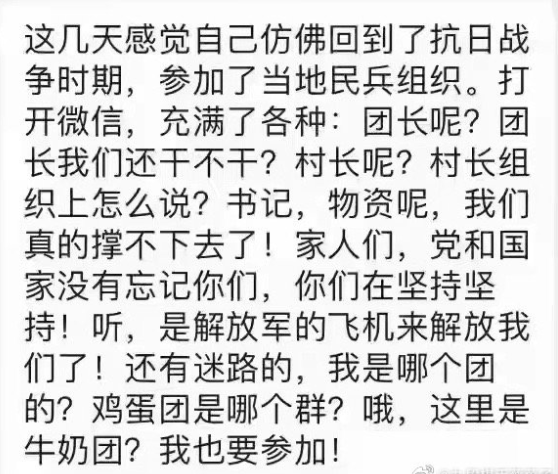 有上海网友幽默地说,这几天让人感觉仿佛回到了抗日战争时期,参加了当地民兵组织。