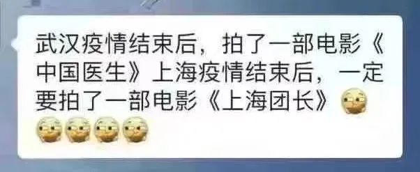 由于“上海团长们”的深入人心,有网友说,武汉疫情结束后,拍了一部电影《中国医生》;上海疫情结束后,一定要拍一部名叫《上海团长》电影,来讲述这段“我的团长我的菜”的精彩故事。