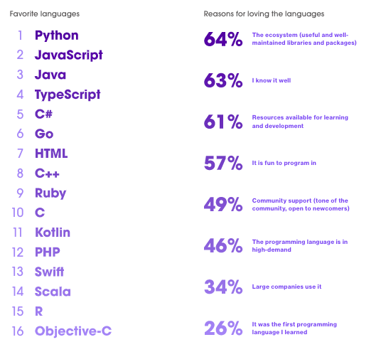 至于为什么会喜欢,64%的人选择了「生态环境」这个原因,比如有易维护的函数库等等。