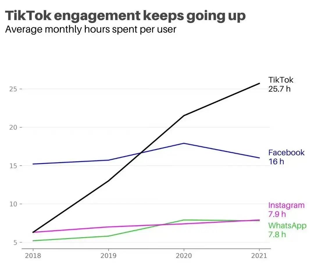 TikTok 在海外的用户时长不断走高