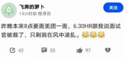 而互联网行业的裁员潮之所以成为众矢之的,一个很重要的原因是——贩卖焦虑已成流量密码。流量裹挟下,一个坏消息可以持续地、人为地被放大,而程序员本身基数较大,而且是一个危机感相对较重、优胜劣汰法则明显的职业。这种特质,加上舆论诱导,很容易就形成人人自危的氛围。