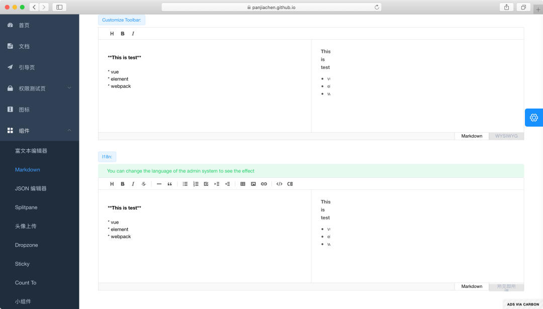 地址:https://panjiachen.github.io/vue-element-admin