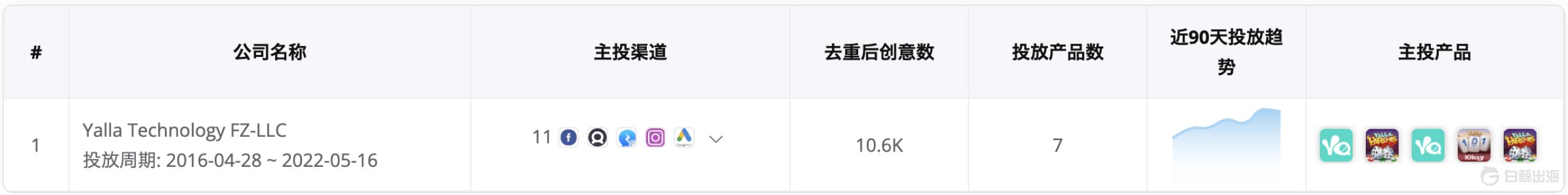 综合广大大与 App Growing Global 数据,在过去 90 天 Yalla Group 的广告预算主要用于 Yalla 和Yalla Ludo 两款拳头产品,而且从广告素材投放趋势变化来看,Yalla Group 在 2022 年 Q1 的广告投放相对较为保守,反倒是到了 4 月才开始有更多投放动作。