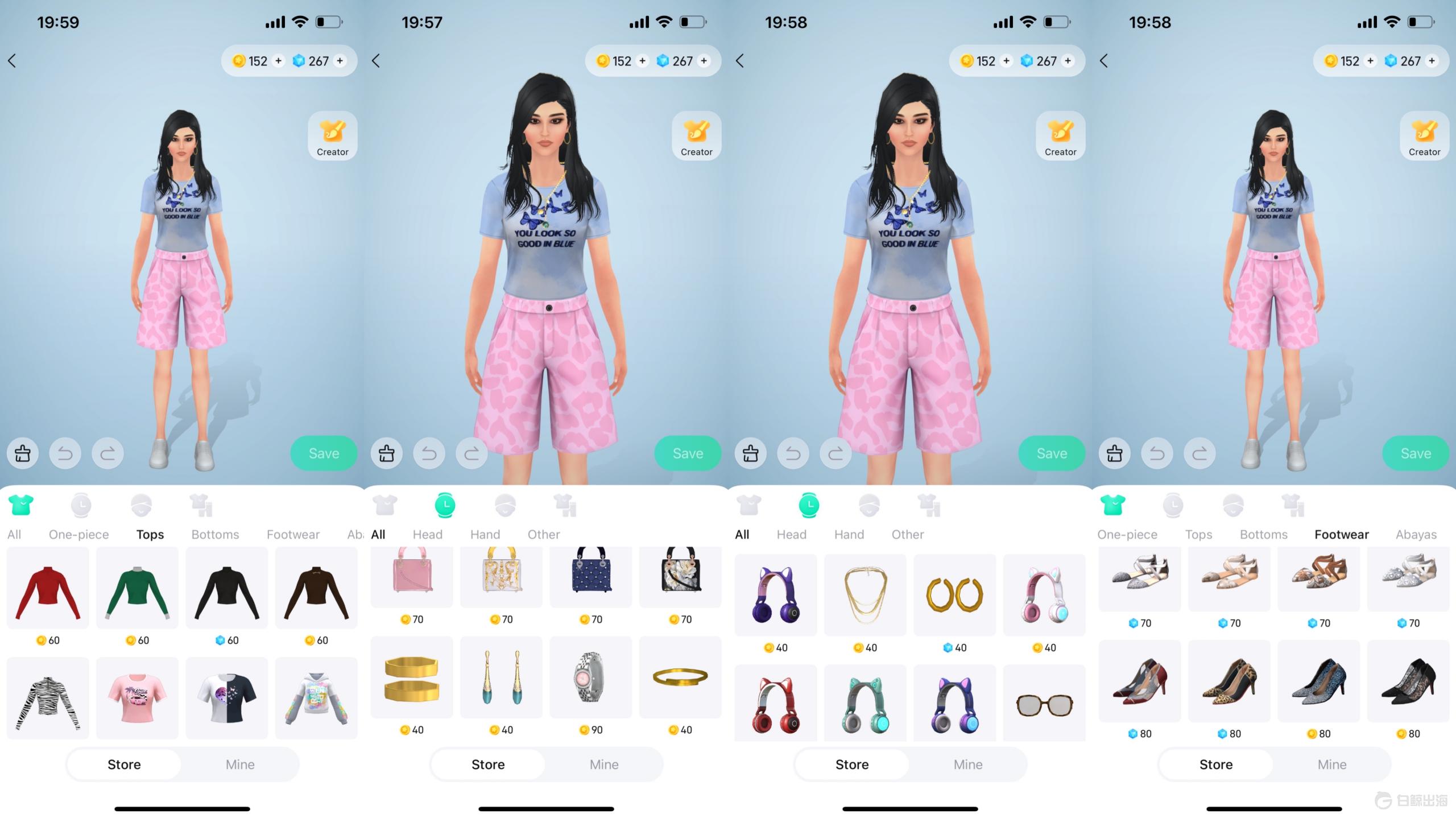 Waha 提供了更多的服装、饰品、鞋履和发型选择。这里有一个有趣的现象是,在 Avatar 应用商店中绝大多数项链、手链和耳环是金色而非银色。