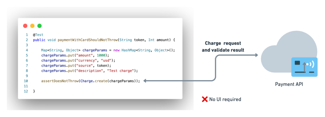 金字塔的中间层是集成测试,Mike在他的书中也称为“服务测试”,其主要目的是测试系统的不同组件是如何协同工作的。例如,代码中的模型是否可以正确地与数据库交换数据,或者某个方法是否可以从API中检索到信息。同样,集成测试不需要UI的交互,便可以直接调用接口处的代码。