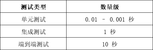 让我们再来看看测试的效率。众所周知,缓慢的测试往往会拖慢生产环境所需的重要信息反馈。因此开发人员需要高效地运行三种测试套件,以稳定提升软件质量。