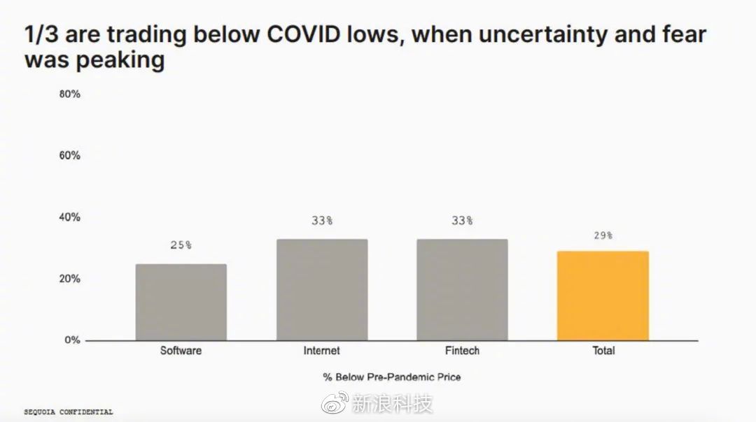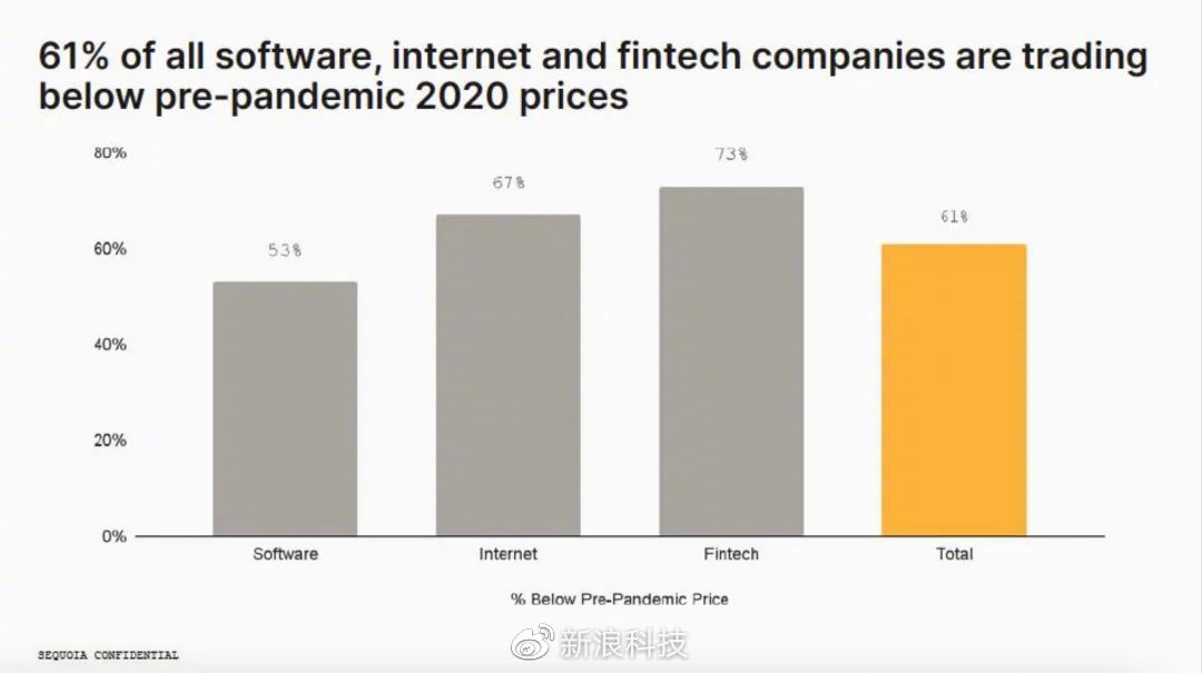 所有的软件、互联网和金融公司里,有 61% 的公司目前的市值低于 2020 年疫情前的价格。