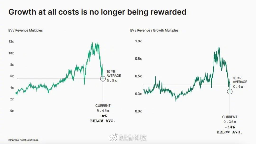 我们看到,企业的估值倍数体系在过去六个月里跌去了一半,并且已经跌到了过去十年平均值以下。如果算上对增长系数的调整,这个数字就更低了。 在通胀、加息和战争等的影响下,投资人更多的开始关注企业的短期确定性,资本变得越来越值钱,宏观不确定性越来越高,使得投资人越来越不肯为长期增长预期付费。