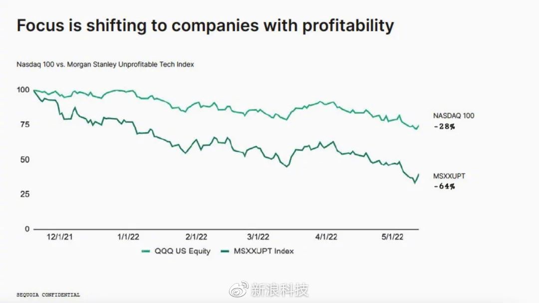 所以,市场关注点开始向盈利公司转移,结果就是摩根斯坦利的未盈利科技公司指数跌去了 64%。