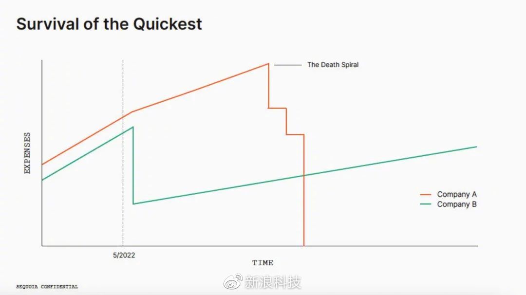 就像上图中的 A 和 B 两家公司,最快做出应对的 B 公司拥有更多的现金流,更可能避免死亡螺旋。