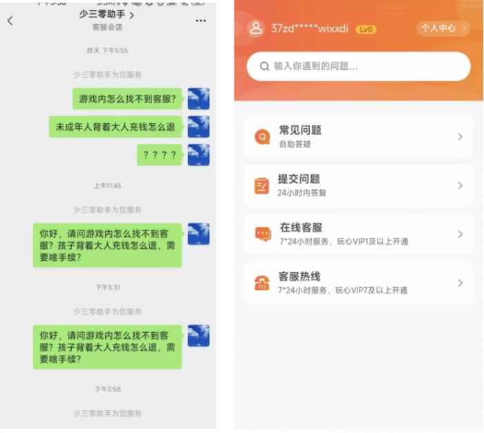 完善手游App内部客服服务渠道,就未成年人充值退款等问题设置标准化机制
