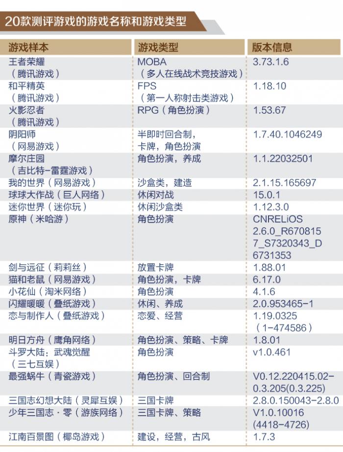 (图说:《20款手游App未成年人保护机制测评(2022)》得分一览。)
