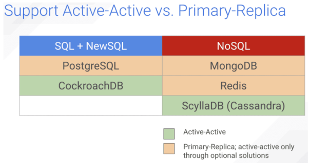 CockroachDB和ScyllaDB(以及Cassandra)是按照多活模式设计的。