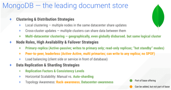 作为NoSQL典型代表的MongoDB,已被开发出了许多分布式数据库功能。例如,它已经能够实现多数据中心的集群了。虽然MongoDB在大多数情况下,仍然需要遵循主副本模式,但有用户可以通过第三方工具使其实现P2P的多活模式。