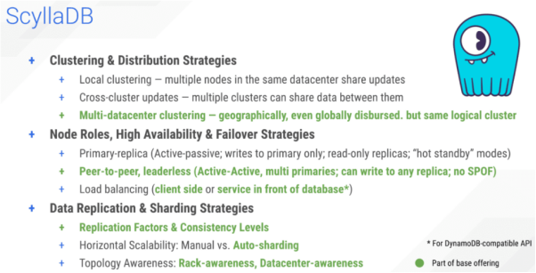 ScyllaDB是按照Apache Cassandra的分布式数据库模型设计的。默认情况下,它带有多数据中心集群,而且采取的是无领导的多活拓扑。