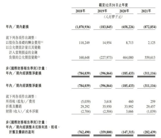 2018年、2019年、2020年、2021年经营亏损分别为9亿元、4亿、1.86亿、3.14亿;经营亏损率分别为198.7%、73.1%、35%、47.5%。