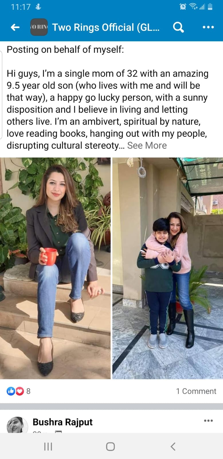 Anaum Janjua 在 Two Rings 小组上发布的个人资料帖 | 图片来源:Facebook