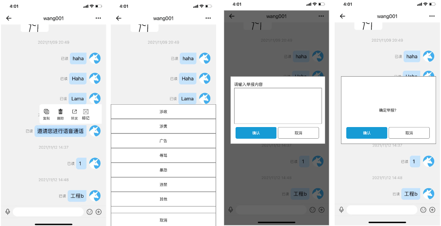消息举报:终端用户对自己接收的不良内容进行举报,开发者在console中对于发送者和消息进行处理。