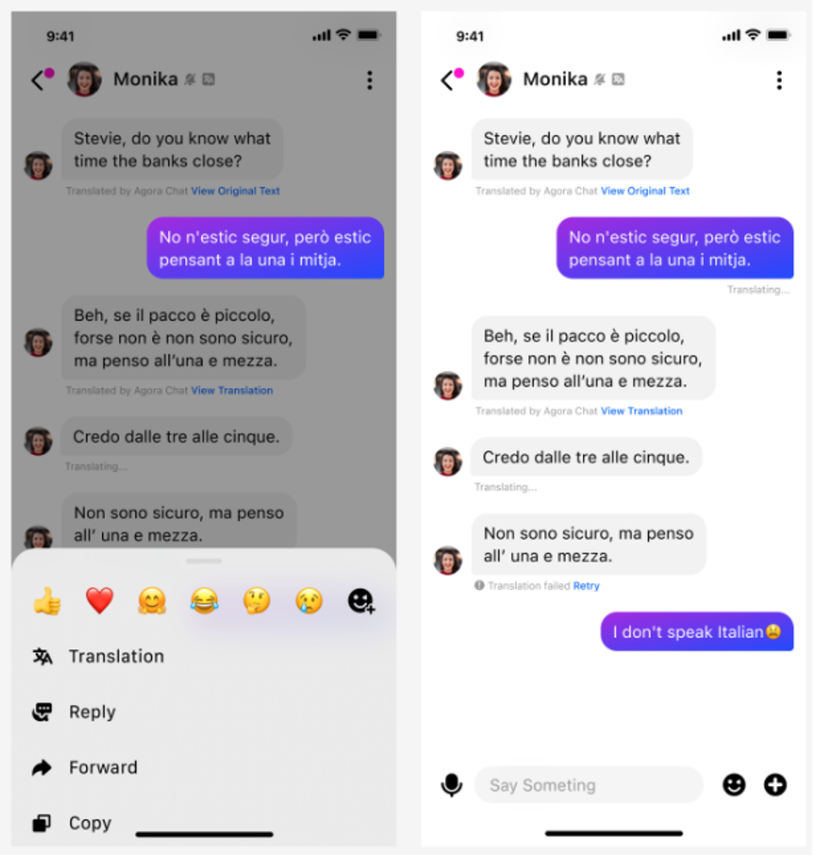 1.按需翻译:收到消息时,接收方将消息内容翻译成目标语言。