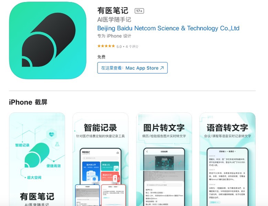 Tech星球独家获悉,百度于近期上线了一款名为“有医笔记”的产品,据悉,有医笔记是一款帮助医疗行业相关人员实现快捷记录、文档整理的智能工具,具备图片转文字、语音转文字、文档智能管理、多端同步等多种功能。