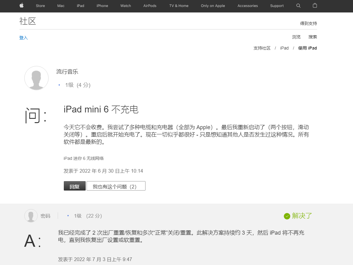 IT之家了解到,近日有几位 iPad mini 6 用户在 Apple 支持论坛等社区反馈称,更新到最新的 iPadOS 系统后出现了充电问题,有一位用户表示他更换数据线和充电器均无效,重启之后虽然有用但也只能维持一段时间,属于治标不治本。