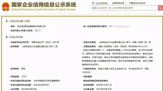 近日,北京市朝阳区市场监管局对违反《合同违法行为监督处理办法》的百合佳缘网络集团股份有限公司进行了处罚。