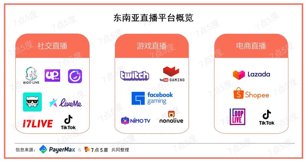 在直播行业生态中,直播平台是最重要的参与者。有趣的是,东南亚少有本地知名的直播平台,大多数头部玩家都来自中国出海企业或者借鉴了中国直播经验。又或者,国外头部社交媒体平台也成为东南亚直播生态的活跃玩家。为多个直播平台提供一站式支付服务的公司 PayerMax 也曾观察到,把中国直播行业成熟的直播模式复制到新市场,让很多中国企业在东南亚“遍地开花”。由于文化相似的原因,在新加坡和马来西亚等华人居多的国家,中国的社交直播、电商和工具类产品能较容易地融入这些市场。