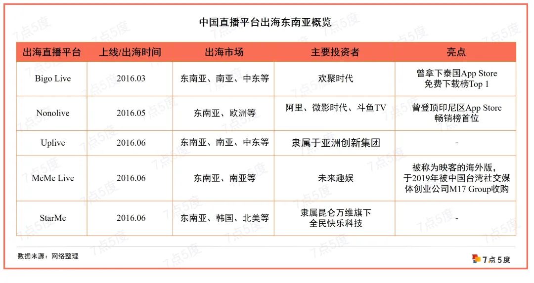 从泛娱乐直播和游戏直播来讲,Bigo Live、StarMe、Nonolive、Uplive、MeMe Live 等中国直播移动 App 成功出海,成为东南亚直播市场的主要搅局者。