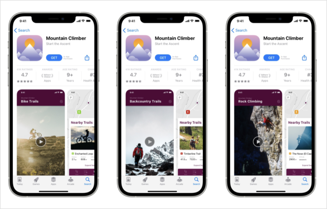 每个产品页可以使用不同的截图、预览视频和宣传文本,并被配有唯一的 URL 链接。而在数量上,开发者一次最多可发布 35 个自定义产品页面,少于 Google Play。