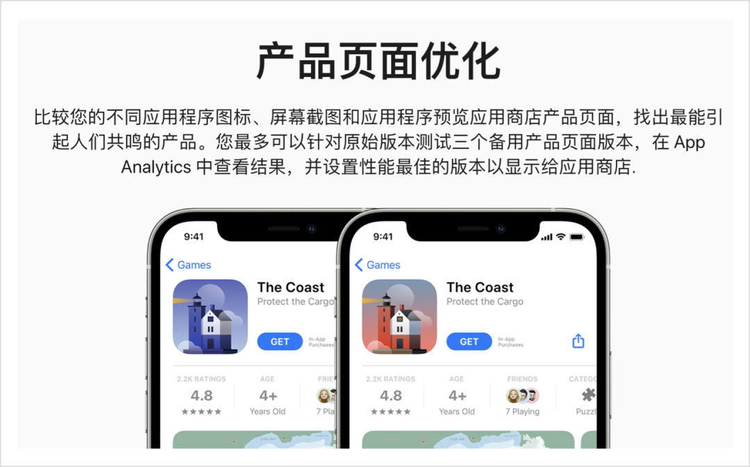 去年 12 月,App Store 上线产品页面优化,帮助开发者测试不同的产品页面,评估效果以提升产品页面的表现。