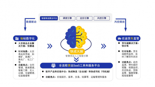 快成物流坚持在AIoT、大数据、算法、数字软件等方面进行技术创新投入,为货运经营者及运输主体提供一站式SaaS服务平台,覆盖数字运力服务、货物在途安全解决方案、卡车后市场O2O服务等,搭建起了完整的闭环生态圈;同时基于海量运输数据,结合快成的AI算法引擎“快成大脑”,实现精准定价、运力分层、联程匹配、全局调度。官方数据显示,快成物流业务已覆盖全国18个省(市、自治区),运输线路超9万条,连接了近85万平台司机、7000家货主企业和近600家油气商户,帮助他们降低成本、提升效率、增加收入。