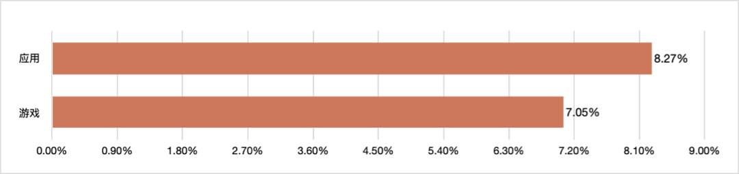 应用类 App 平均 TTR 8.27%,相比 7 月略有上升。