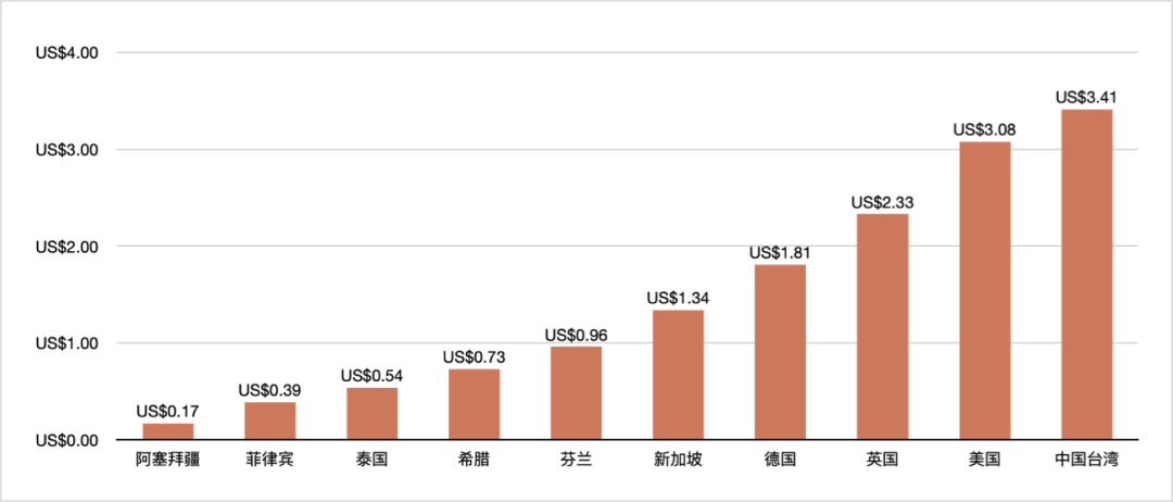 阿塞拜疆游戏类 App 的平均 CPT 最低,为 $0.17。