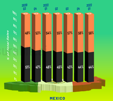 对于墨西哥人来说,电子支付越来越便利,支付方式越来越多样化和物流配送的发展,使得线上购物已经成为许多人的习惯。其中 Mercado Libre 美客多和 Amazon 亚马逊是大部分时间的首选,速卖通和 Shopee 也有一定的市场,理由是品种选择多,配送快,支付方便和有价格优势;同样当地的中大型连锁零售商的线上购物渠道,也同样受到欢迎,例如 Walmart 沃尔玛、Soriana、la comer、costco、Liverpool、Sam's 等,同时整合超市资源的 APP Cornershop 是许多年轻人希望超市产品送货时的选择,大家有时候也会更倾向于对自己线下见过的实物,消费过的品牌的品质保证更有信心。
