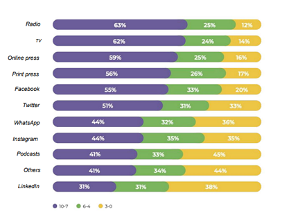 墨西哥人获取信息的渠道,按使用频率 1-10 打分