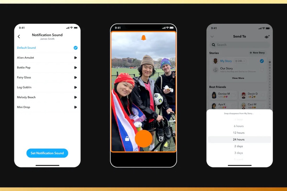 “自定义消息提示音”则允许 Snapchat Plus 会员为不同的好友设置不同的消息提示音,这样用户就可以在不看手机的情况下,直接分辨是谁给自己发送了新消息。