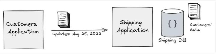 我在FTP上包含了CSV,以特别表明数据共享的方式是无关紧要的。重要的是,有一种从应用程序发布数据的既定方式,因为这种架构风格的一个关键方面是不必在需要的时候查询数据。相反,我们将其摄取到自己的系统中。我想很明显,为什么发货应用程序不会打开一个FTP连接到客户的每日CSV转储文件以查找详细信息。同样的,它也不应该将查询GraphQL端点作为其常规例程的一部分。