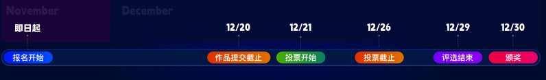 参赛者需在规定时间内报名,不限个人或团队参赛,团队参赛请指定一名联系人,活动期间可随时报名和提交作品;