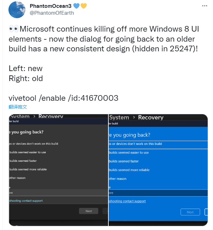 此外,新版 Win11 Dev 25247 还包括其他一些隐藏更新,例如“设置”中有一条“回收或折旧 PC”的链接。