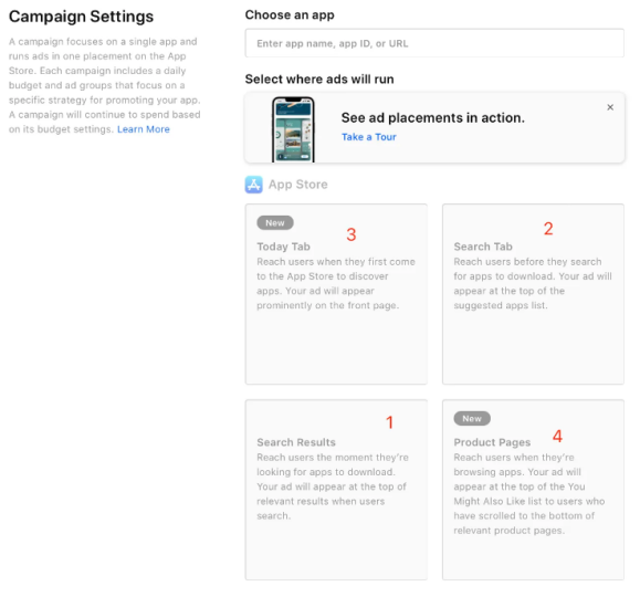 再加上苹果的 App Store 此前的两个广告位:搜索栏(Search Tab)和搜索结果页面(Search Results),目前苹果共有 4 种广告形式。